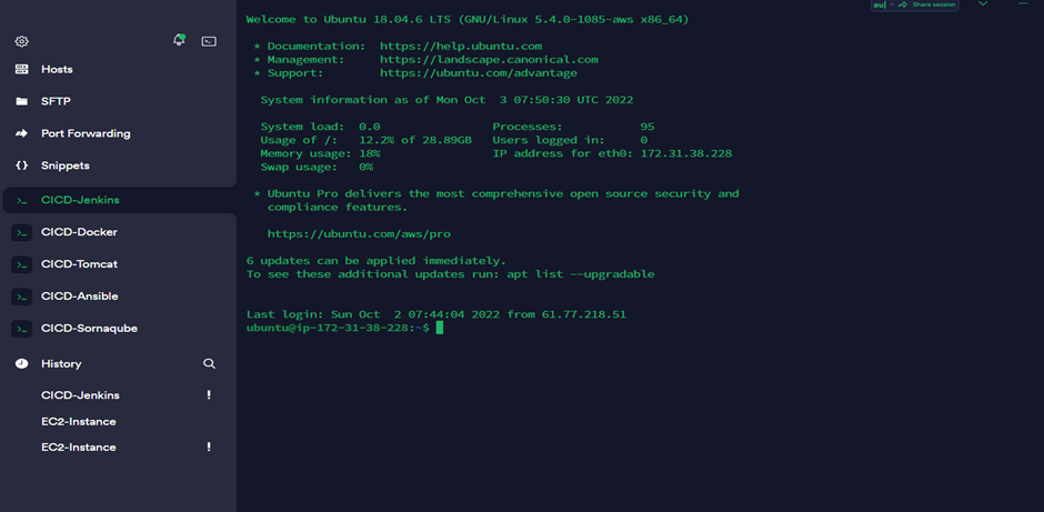 우선 자신의 EC2 인스턴스의 SSH에 접속을 해줍니다. 필자는 현재 SSH-Client-Tool 로 Terminus를 사용중입니다. gitbash를 사용해도 무방합니다 =) 편리한 EC2 인스턴스 접속(SSH Client Tool) 편리한게 AWS EC2..