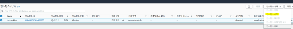1편에서 만들어둔 EC2 인스턴스를 중지시키고 이미지(AMI)를 생성해줄 겁니다.