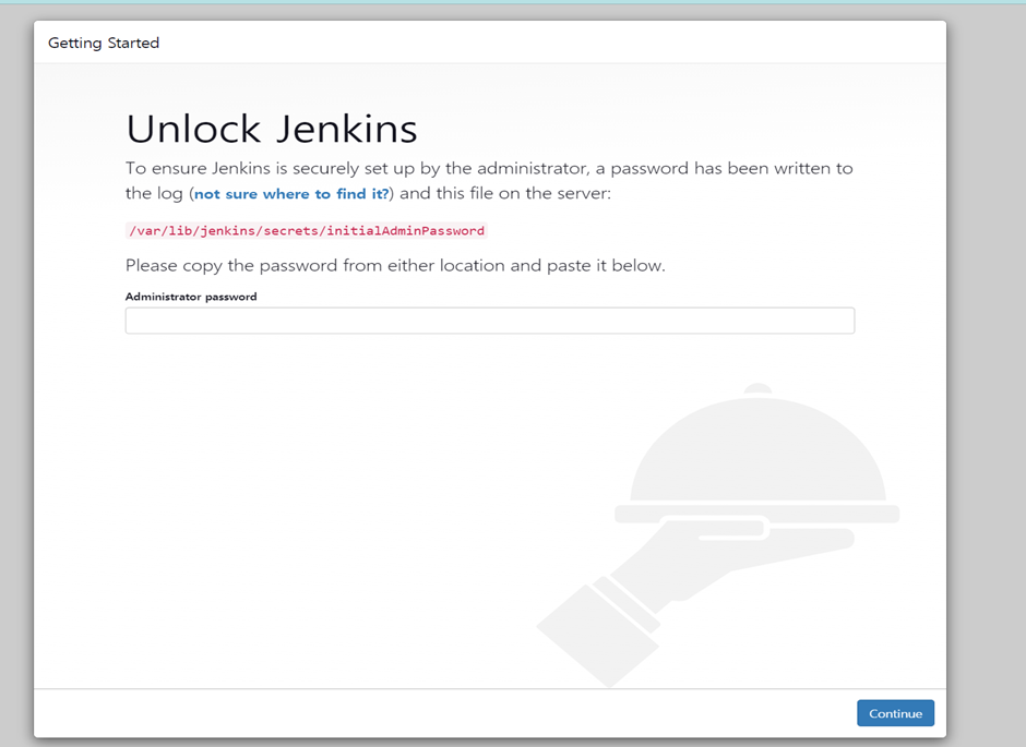 접속을하면 다음과 같은 창이 뜨는데 여기에 아까 명령어를 통해 확인한 jenkins의 초기 비밀번호를 넣어줍니다.