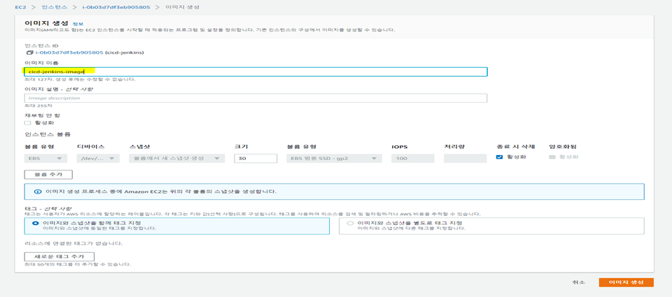 그럼 이와 같이 창이 뜨는데 여기에서 이미지 이름만 입력을 해준 후 이미지 생성 버튼을 클릭해줍니다.