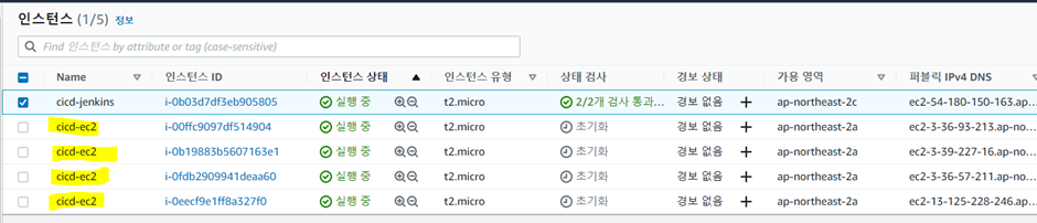 그럼 기존 인스턴스를 포함하여 총 5개의 인스턴스가 생성된 것을 확인할 수 있습니다.