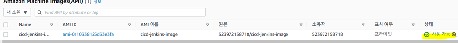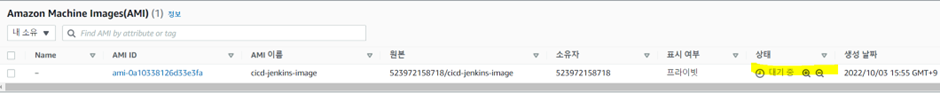 생성을 완료하였으면 EC2 카테고리에 있는 이미지의 AMI로 들어와서 확인을 해봅니다.
