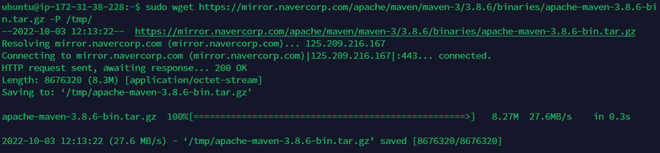 sudo wget https://mirror.navercorp.com/apache/maven/maven-3/3.8.6/binaries/apache-maven-3.8.6-bin.tar.gz -P /tmp/