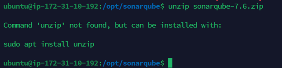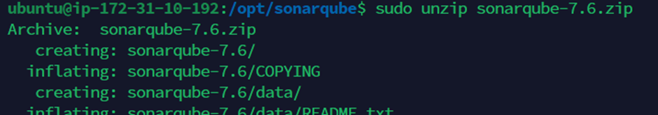 $ sudo unzip sonarqube-7.6.zip