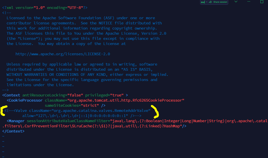$ sudo vim ./webapps/manager/META-INF/context.xml
