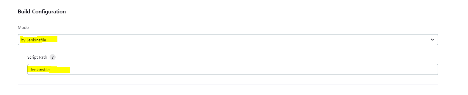 다음은 Build 설정과 관련하여 default로 되어 있는 Jenkinsfile을 그대로 설정하였습니다.