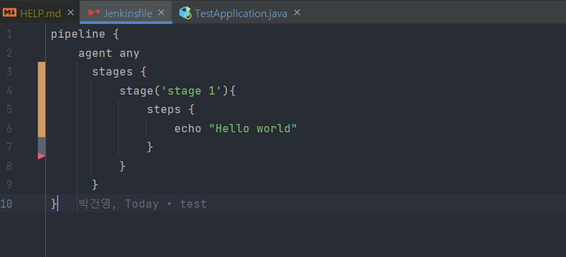 간단한 테스트를 위해 Jenkinsfile을 만들어보도록 하죠.