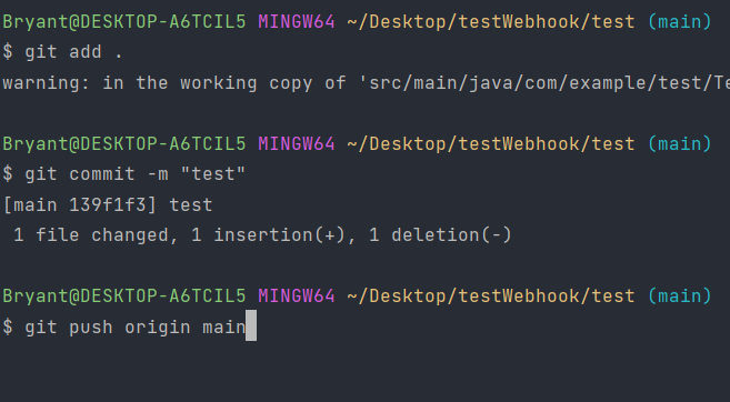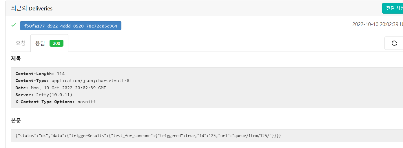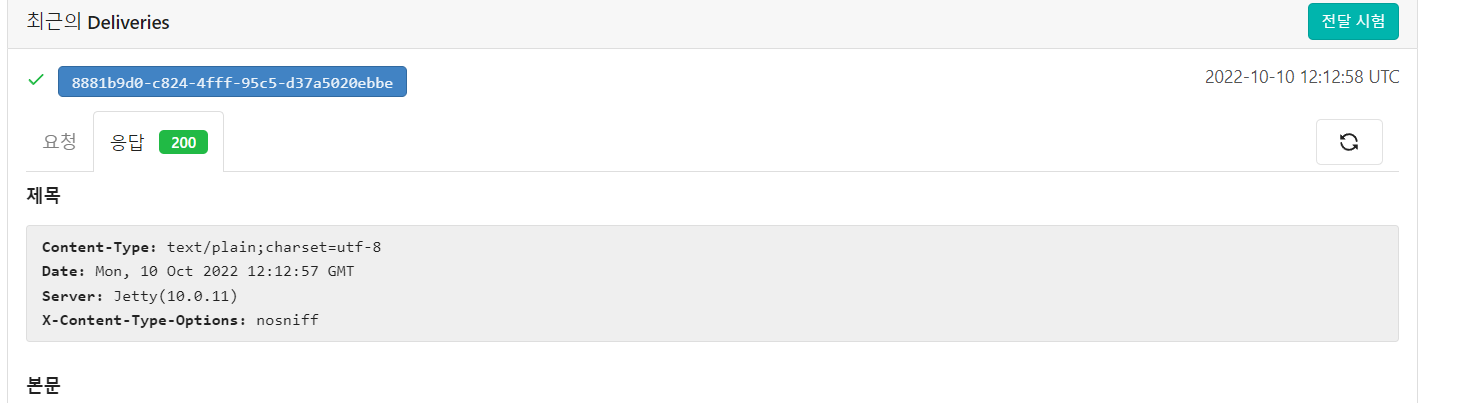 다음과 같이 정상적으로 Webhook이 작동하는 것을 확인하였습니다 =).