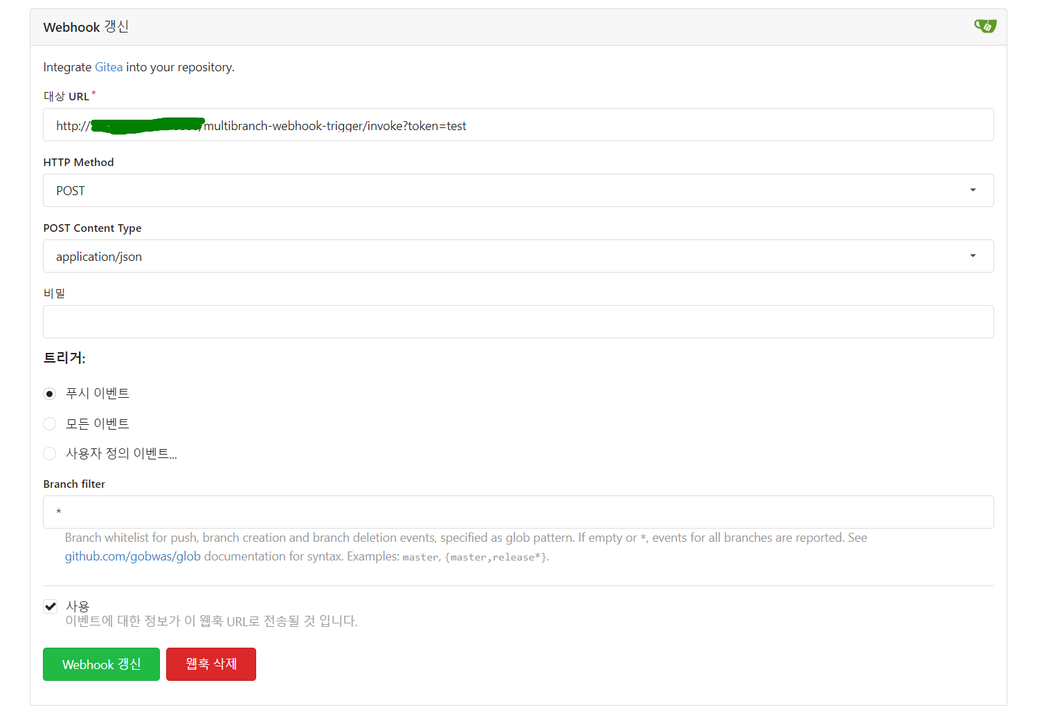 http://젠킨스주소/multibranch-webhook-trigger/invoke?token=test