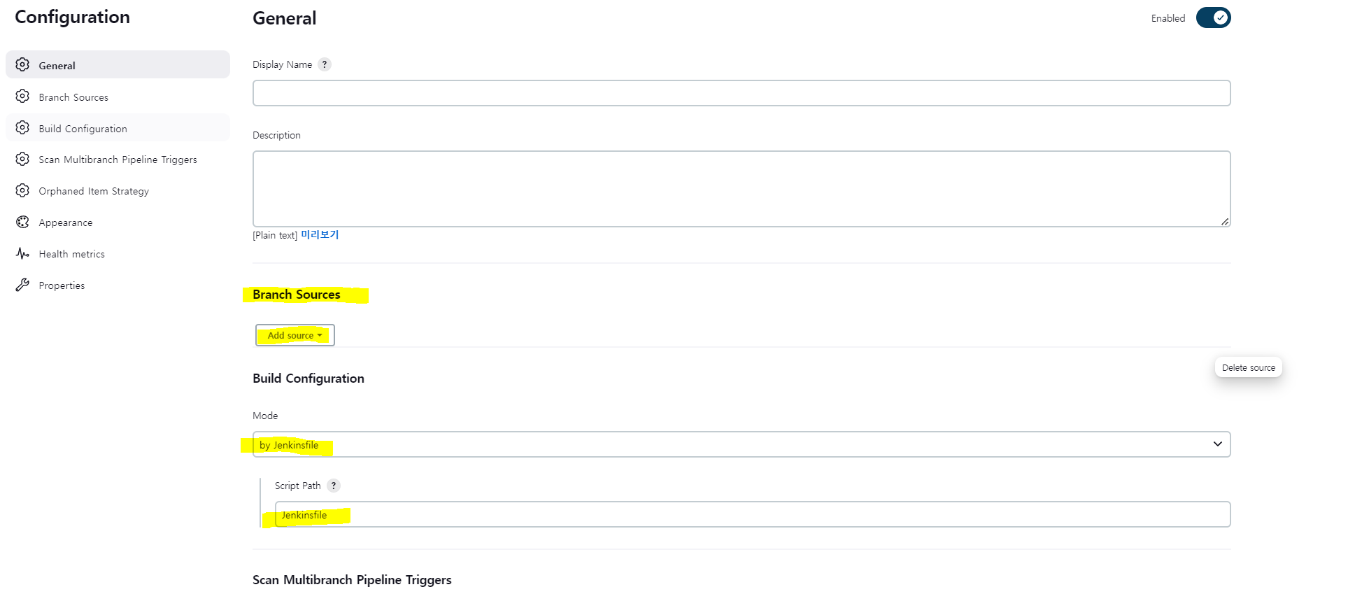 Multibranch Pipeline 프로젝트를 예시로 사용할거기 때문에