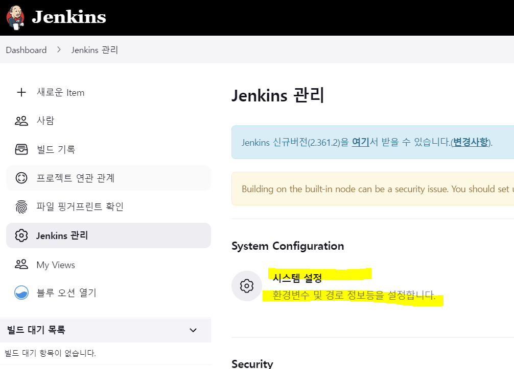 이후 Jenkins 관리 - 시스템 설정에 들어가 Gitea를 연결해줄 것입니다.