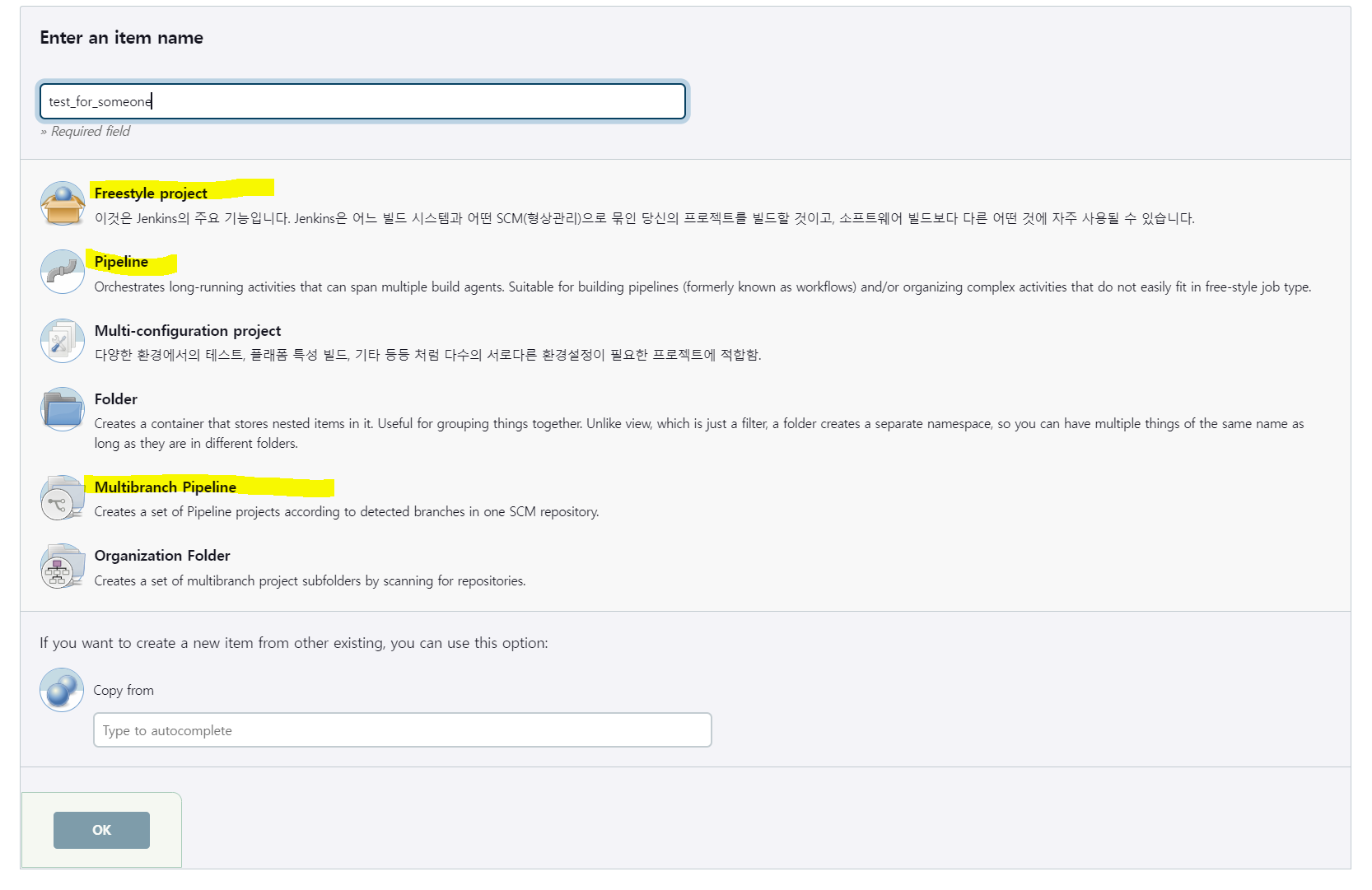 다음과 같은 창이 있을 텐데 필자는 예시로 Multibranch Pipeline을 만들어보도록 하겠습니다.