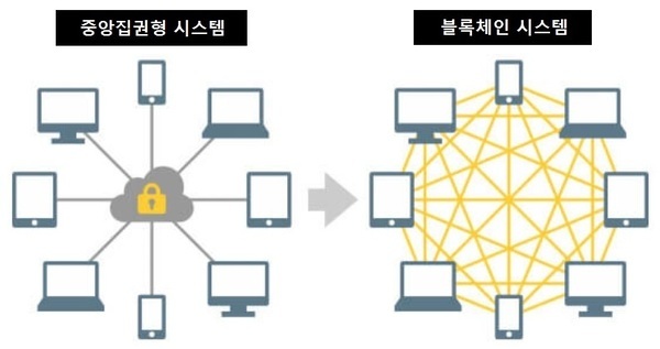 블록체인은 이러한 방식과 달리 중앙 서버없이 노드(Node)들이 자율적으로 연결되는 P2P(Peer to Peer)방식을 기반으로 각 노드에 데이터를 분산 저장하는 데이터 분산처리 기술입니다.